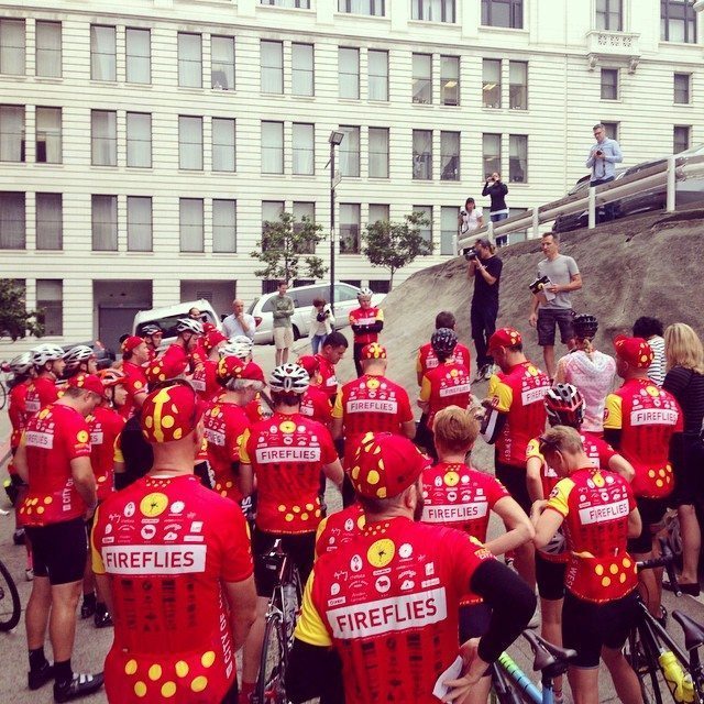 The first time I ever heard tell of the name ‘Fireflies’, was in connection with my friend, Benny Hampshire who happened to work at long time supporters and CGI company, The Mill, and whilst I had obviously heard of the other long time supporter and film-maker Ridley Scott, it wasn’t until my wife and I attended a Fireflies’ ‘send off’ party in Golden Square that I became aware of the Fireflies and their combined charitable undertakings. I was struck by the riders’ obvious enthusiasm; and by what seemed the tangible presence of great energy and real power for good in that square that day.