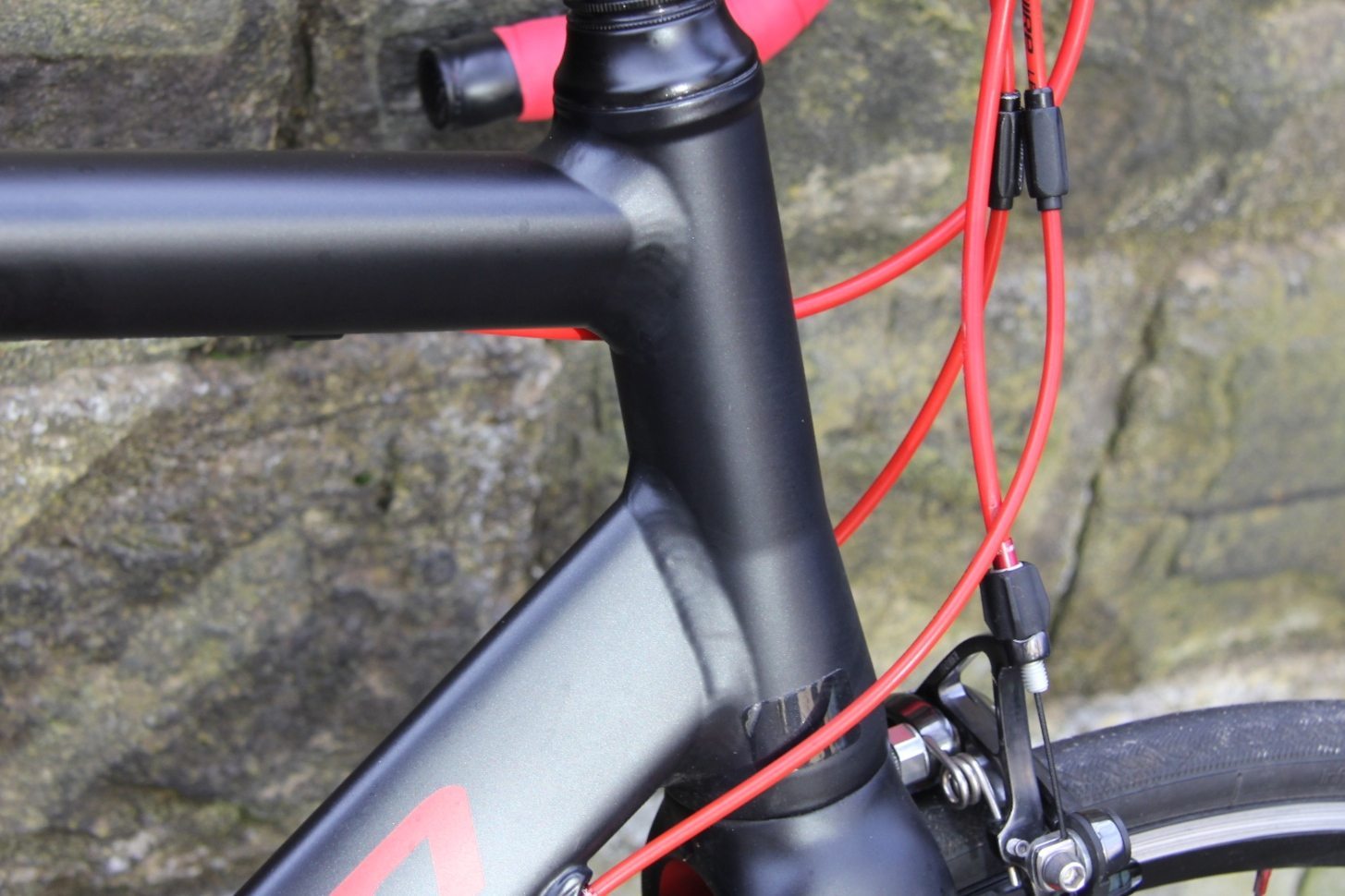 The welds on the frame, though not the prettiest, look bombproof, essentially deep enough, with 110% coverage, to give confidence for the heavier rider to really throw the power down. On the website it describes the welds as ‘double pass’ ensuring that the tubes’ connections are as strong as possible. These are all hand welded, which will contribute to the relatively higher price tag, but when buying a quality alloy frame like this, you expect it to perform much better and offer a higher quality of ride than the cheaper carbon frames at the same price point.