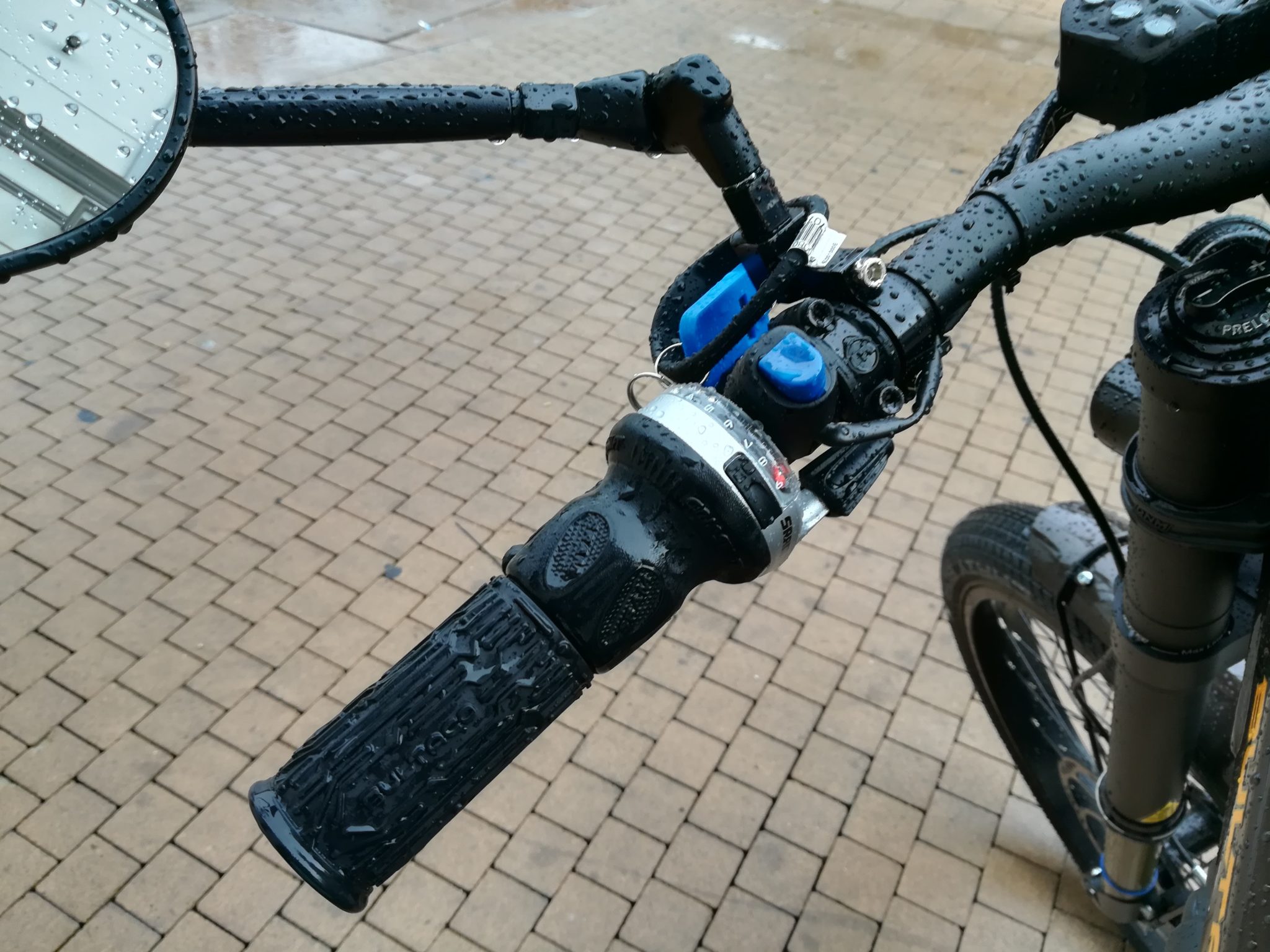 The blue button activates cruise control