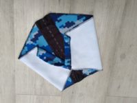 While the original Weatherneck was available in numerous colour combos – ours is cool blue camo effect – the new system is only available in black as dyed fabric performs better at wicking moisture than sublimated fabrics.