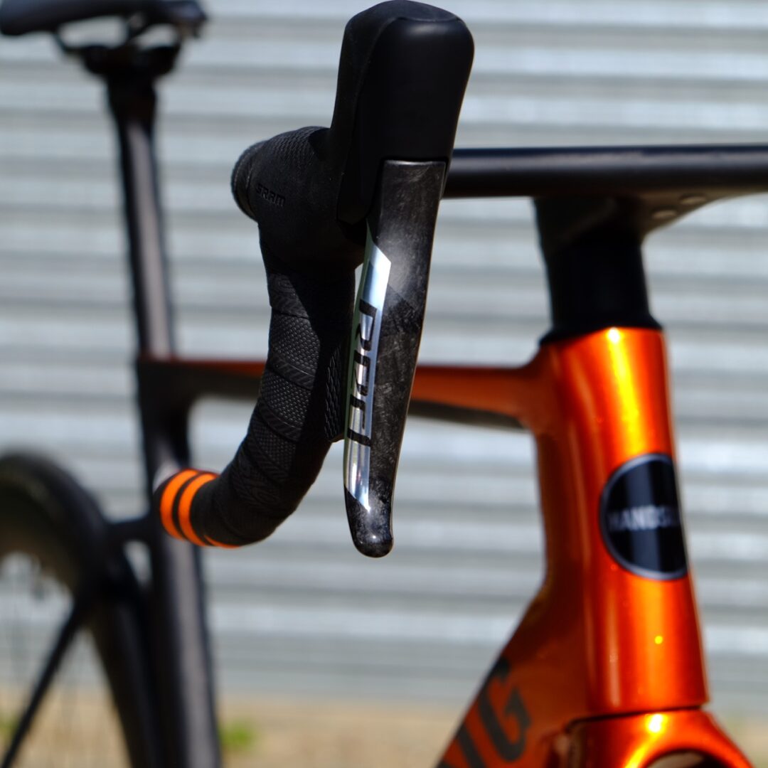 Finally, Handsling excels at being flexible in their bike builds, building every bike to the desires of the rider. This could be gear ratios, crank length or wheel choice, you can use their bike builder page to choose your exact build. This is great as often you have to change out components on a bike after purchase to get it exactly how you like it. In my case the biggest decision was what group-set and wheels. In the end choosing the SRAM Force AXS group set and the CERO RC50 wheels. However, since then Handsling have now partnered with Parcour offering a great range of wheels that are, importantly, UCI legal.