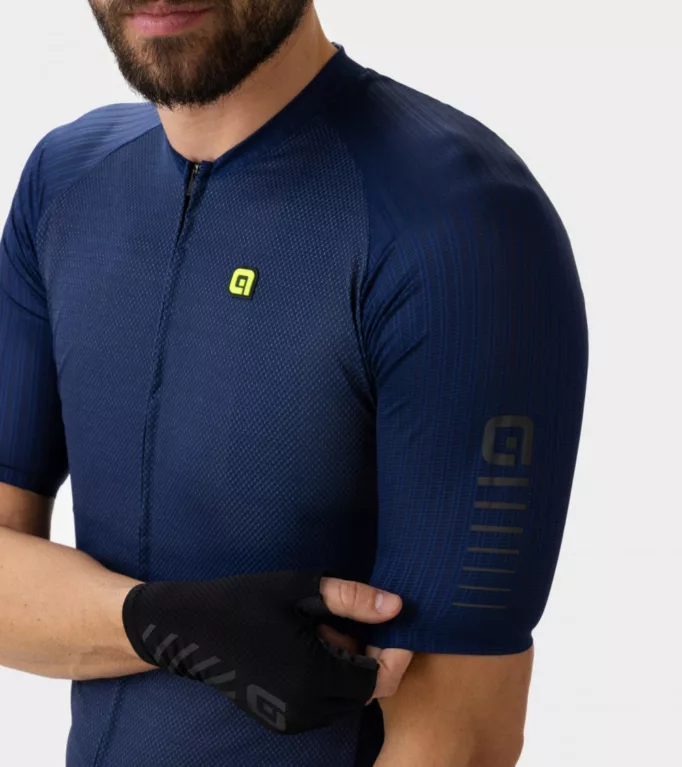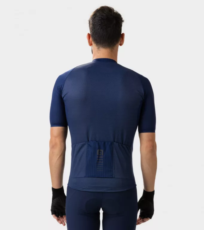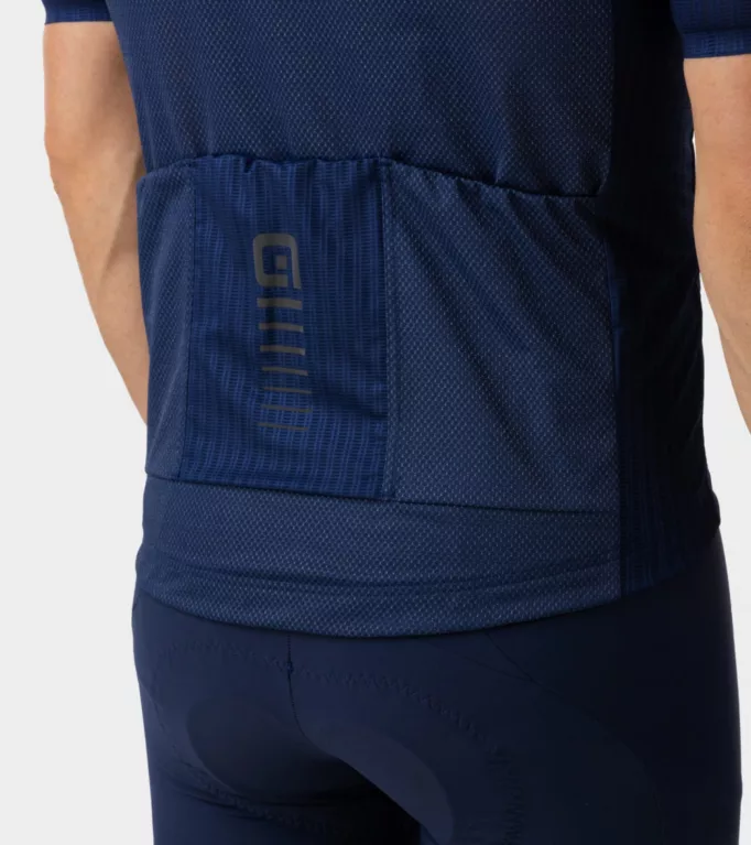 Alé have made the R-EV1 Silver Cooling Jersey from two fabrics. The main body has 93% polyester, 5% other fibres and 2% elastane in it’s construction. On my dark blue jersey, the silver yarn can be seen as a scale-like pattern. Hold the jersey up and it’s see-through, you’ll need to apply sun-cream when wearing this jersey! Alé say the fabric chosen for the R-EV1 Silver Cooling Jersey is designed to dissipate heat and keep your core-temperature consistent on long hot rides.