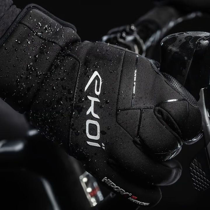 Fist up are Ekoi’s ARTIC HIPPORA winter gloves. These are waterproof, breathable and warm down to -5°C. The inside is fleece-lined for warmth and the palm has gel pads to reduce road-buzz. A nice touch is the thumb and index finger which are longer than normal. This is so they fit better when you’re riding on the hoods. They will also work with touch-screens, so you won’t have to remove them for those vital selfies. The cuffs have velcro closures and an elasticated band to helpl keep draughts out. For wear in temperatures down to -5°C. Price, £90.52 (excl. special offers)