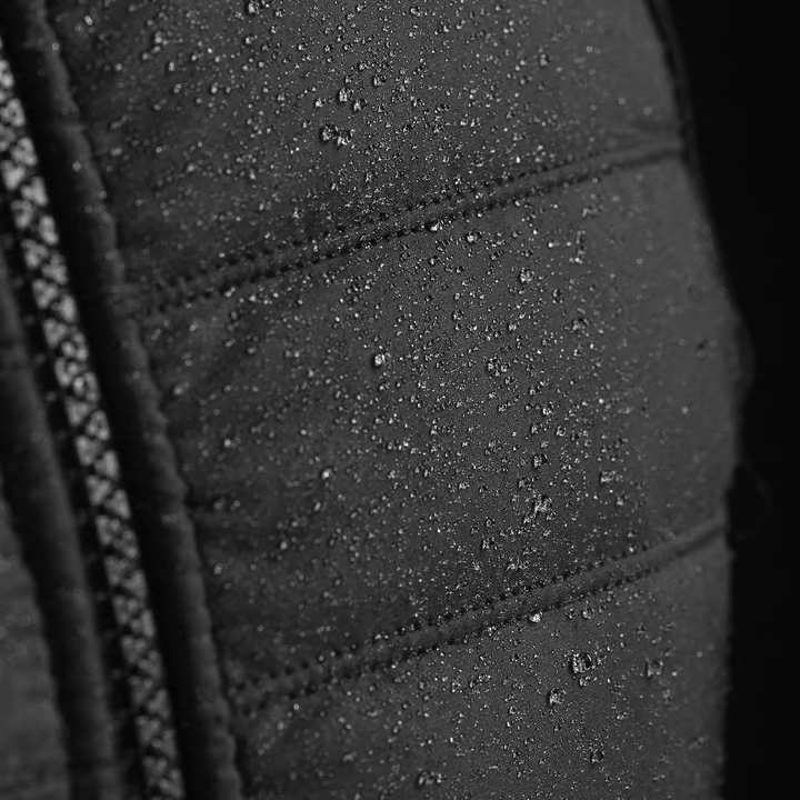 However the ELEGANCE is not just a pretty face. While the front will keep you warm and shrug off road spay and light rain, the sleeves and back need something tougher. Here you have a stretchable, waterproof material, finished with a light fleece on the inside. The collar is high and fleece-backed and the zips have garages top and bottom to stop rubbing.