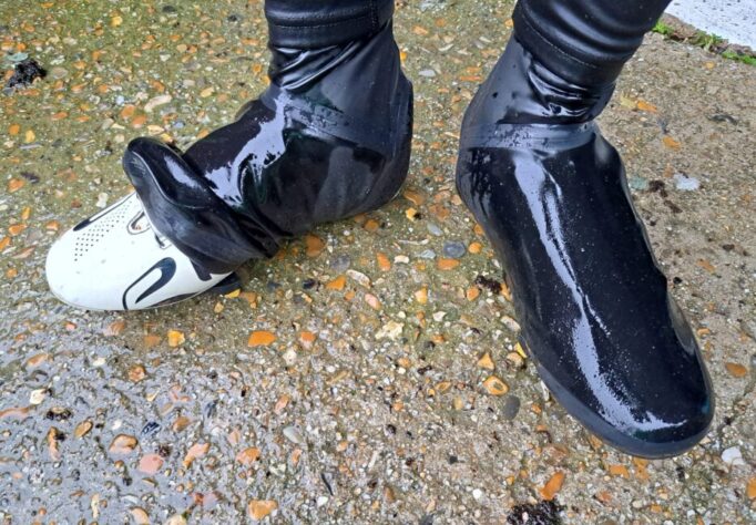 GripGrab’s solution is to extend the shoe-cover high up your leg and to run them under your tights. This way the water has to get past your outer-layer and the tight fit between shoe-cover and skin. Add a pair of water-resistant leggings (like GripGrab’s Aquarepel) and that makes it a whole lot harder for the water to penetrate. And I can confirm that this double layer protection really helps keep the wet at bay.