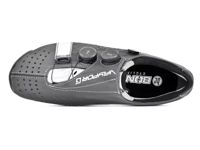 The Vento Ferox Carbon has an unusual woven mesh over a PU laminated upper, this keeps the weight down, but is still tough and breathable. It also uses a mixture of a Powerstrap for the instep with a BOA Li2 ratchet for the forefoot. The X1 carbon sole is covered with rubber tread, protecting the sole and giving you some grip, should you need it. It comes in three colours, no white though. Weight is 297g not sure for which size. I think the only issue I might have is that they tend to be a bit of a narrow fit.