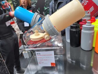 Elite had their top level Justo interactive trainer and the Rizer, which simulates gradients and steering, taking your on-line training to a whole new level. And to keep you cool you could invest in the Aria training fan. Their Jet Green bottles now come in new colours and when you’ve finished your ride you can use the Neto steam steriliser to clean your bottles. Jet Green bottles are made from plant-based plastics.