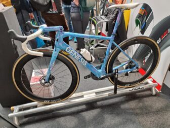Also on the Vittoria stand was this Genesis bike. Rumour had it that it belongs to a flamboyant British ex-pro, can you guess who? And while your guessing, look at that stem!