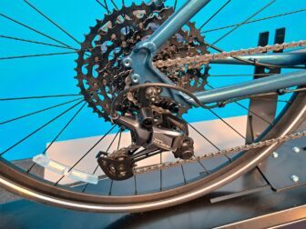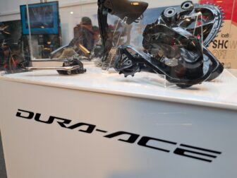 There was plenty of product from Shimano, including the new Cues drive-train, which will be appearing on new bikes soon. And some beautiful Dura-Ace, kept in a display case to keep those sticky finger marks off!