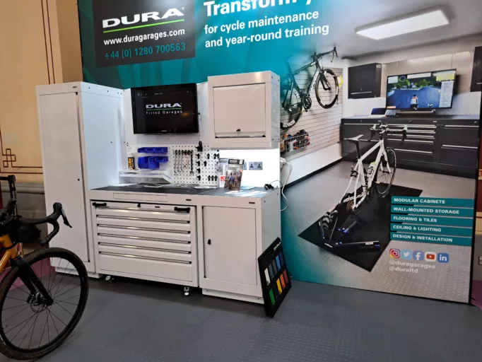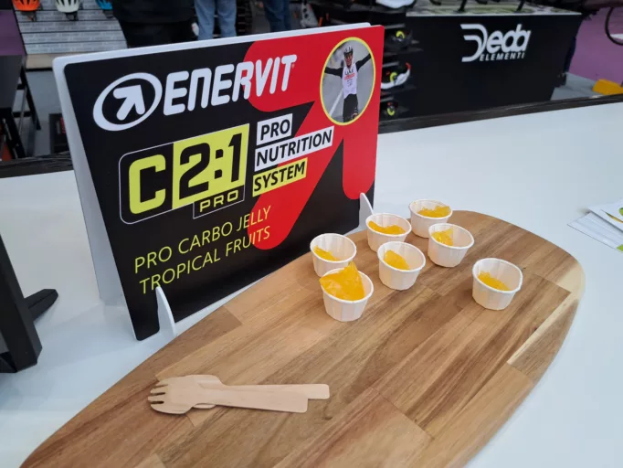 Any other items catch my attention? Well yes. Enervit had samples of their energy products and one of them could be the answer to one of my cycling “issues”! Gels, more specifically the sticky fingers and gooey mess in your pockets after using them. Their Carbo Jelly looks like it could be the answer. Instead of the usual viscous sticky fluid, you get a jelly that is easy to swallow and leaves no mess: perfect. And if you’re a fan of indoor training, but bored by the static position and lack of input, Mouv had the answer. Mouv are stationary bikes, that move! Rather than making you ride in one fixed position, the Mouv sways and bobs just like a real bike. This gets you using your core and makes sessions more fun, I enjoyed playing on it. And if like me you have too many bikes piling up, then Dura Garages have a solution