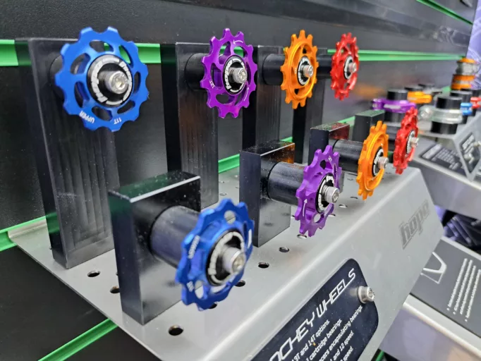 What’s the most important part of a bike, the frame, the wheels, groupset, tyres? Ask a hundred cyclists and get a hundred different answers. Handily there were loads of brands showing everything you could need to answer that question. There was Hope with their anodised engineering eye-candy display: how long before they make a complete groupset? Lezyne with more pumps than…well, I don’t know what. But there were a lot! Schwalbe, Pirelli, Continental, Goodyear and Halo were just some of the tyre brands that you could get up and personal with. Tubolito had their lightweight inner tubes including the PSENS that can tell you what your pressure is and the X-TUBO with a one year warranty against punctures. Too good to be true?