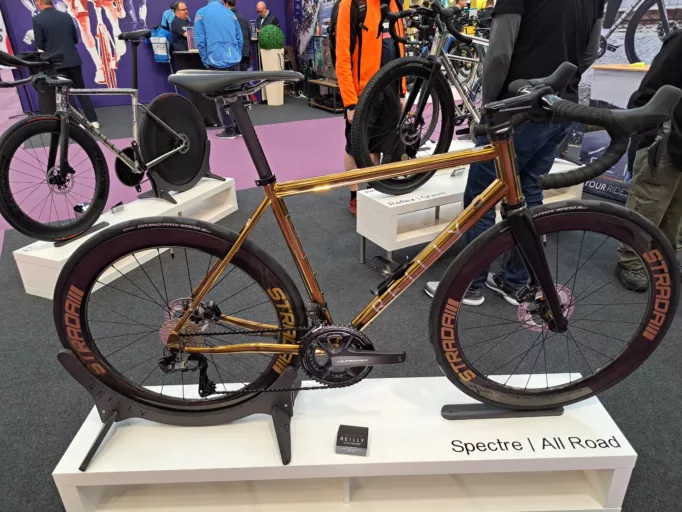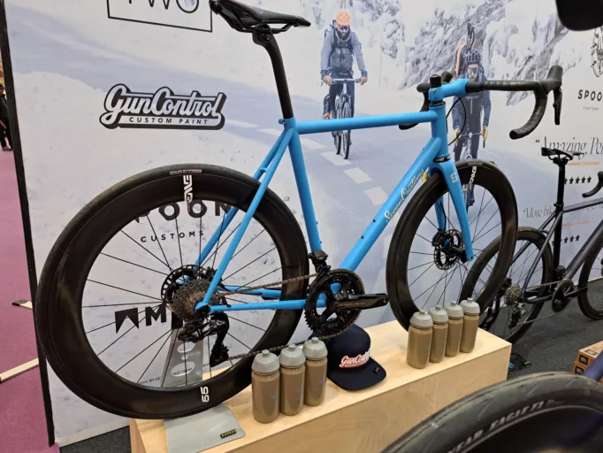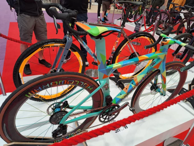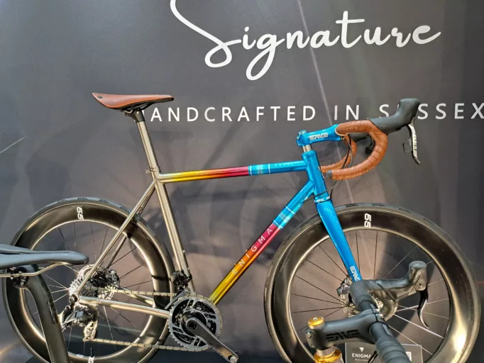 Basso were there with their fixed-pivot Tera and sparkly Palta gravel bikes. The Wilier Filante SLR floated above their stand with it’s smoky-blue paint job. The paintjobs and the attention to detail on the Reilly Cycleworks bikes were worth a good old look. Another Sussex-based brand displaying paintjobs to die for were Enigma. They’ve been producing custom titanium bikes that never go out of fashion. And talking of never going out of fashion Condor Cycles, a London stalwart were there, showcasing some of their bikes