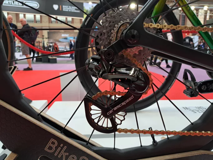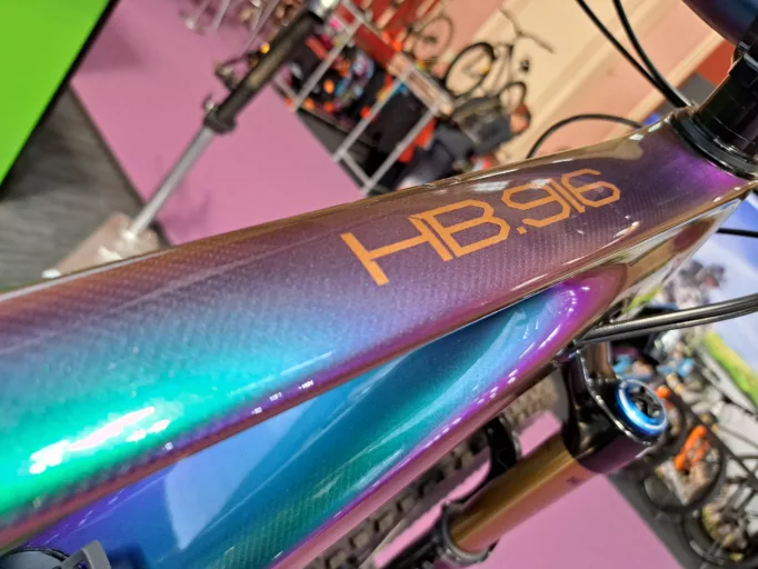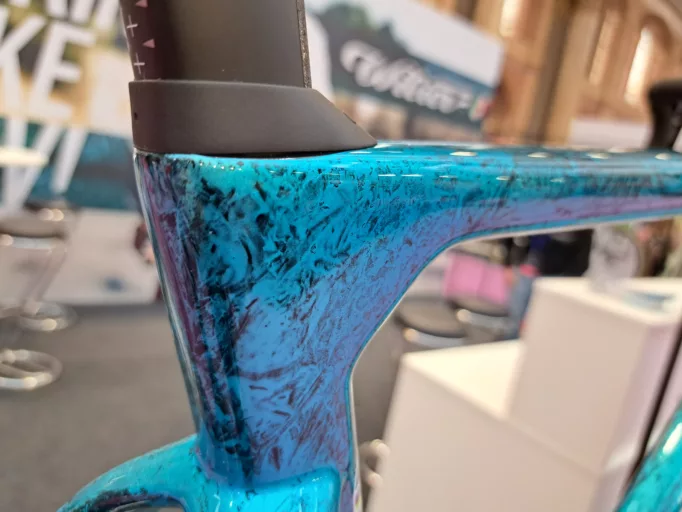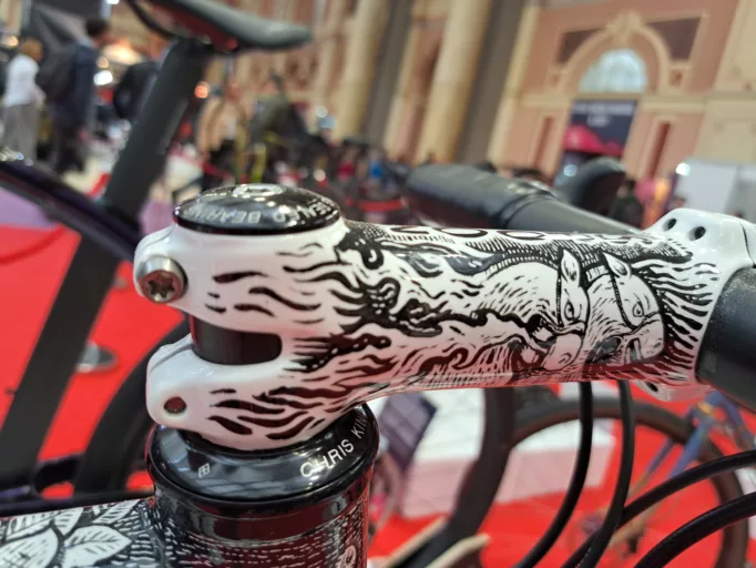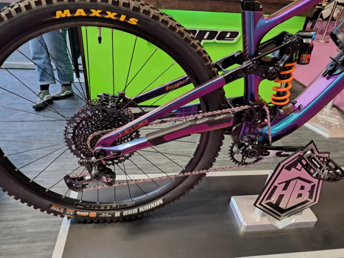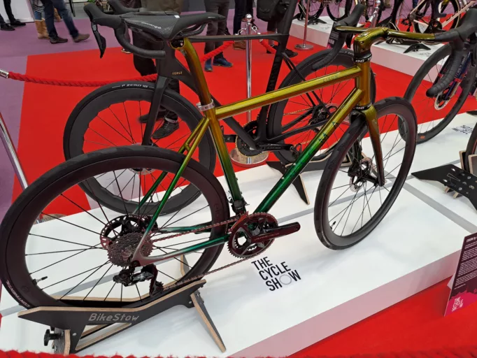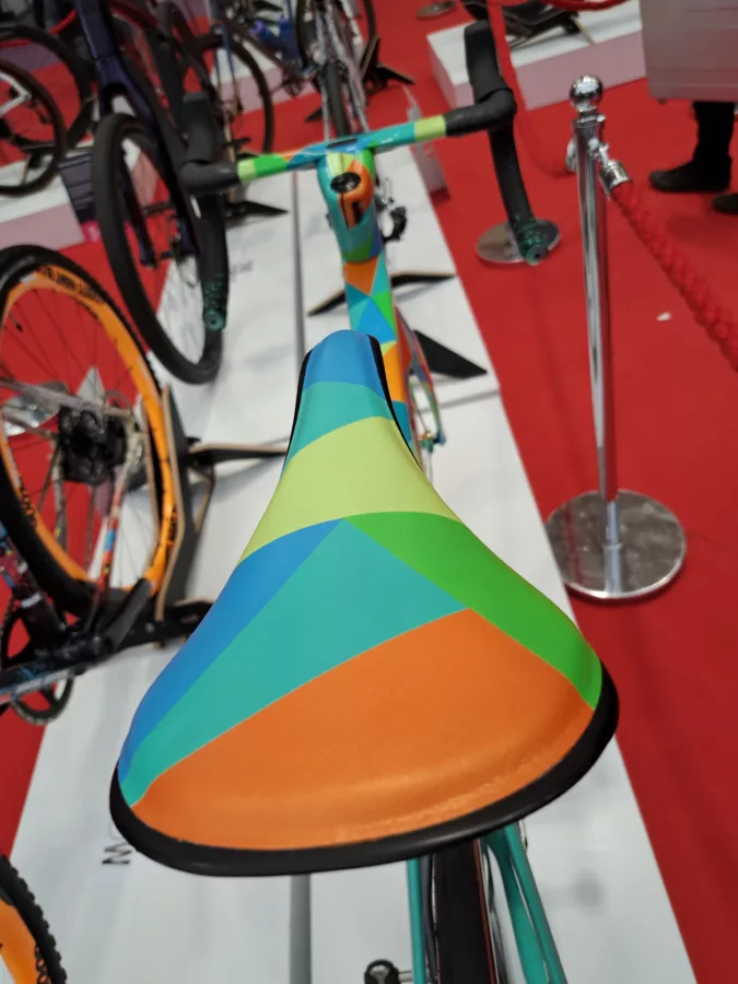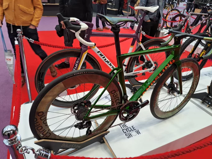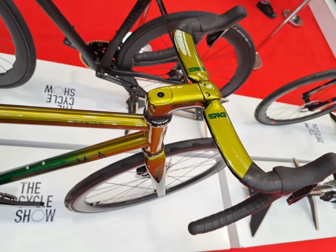 From Sussex back to bella Italia and Bianchi, their stand was awash with celeste bikes that caught the eye. But it wasn’t just road bikes, on the Hope stand was their HB916, which I hadn’t seen before. As you would expect from the masters of bike bling it was a standout example of engineering: well worth a look. Atherton Bikes were flying the flag for Wales with their bikes. These Welsh made bikes use carbon tubes bonded to 3D printed titanium lugs. Are they any good? Well they’ve won the odd World Cup, so I’d say yes!