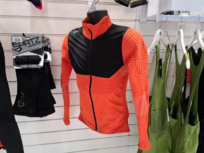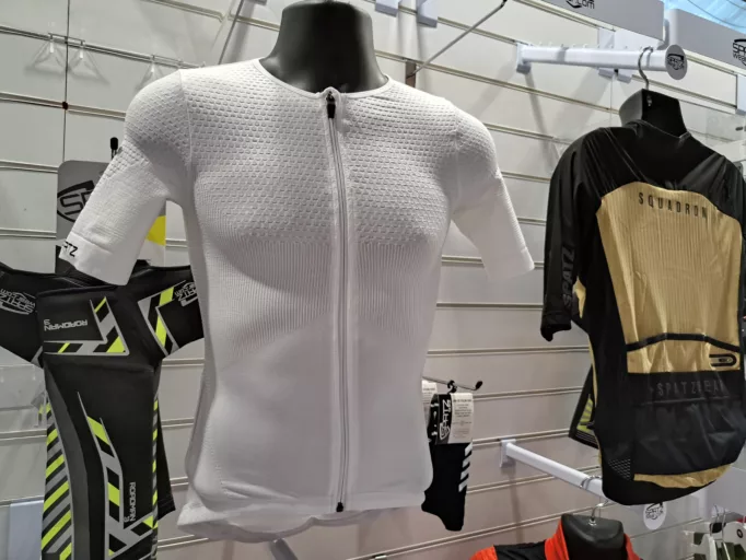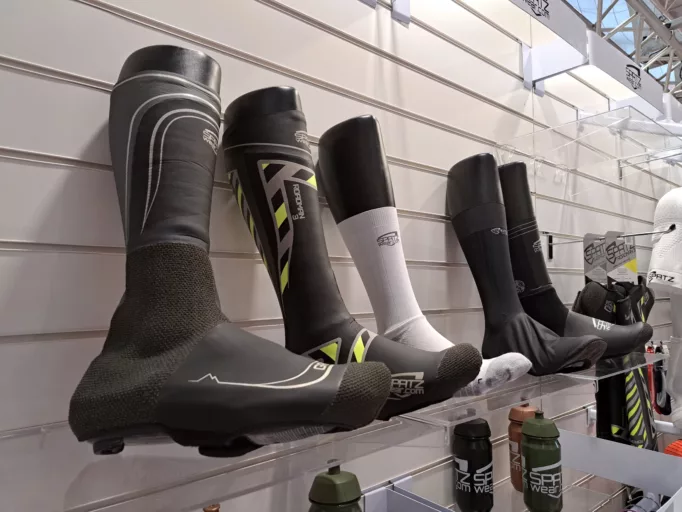 A real eye-opener was on the Spatz stand. You’ve probably seen their high-top shoe covers out on the road, but maybe not their clothing. I spoke to their designer about the unusual looking material that they used. This is created by specialist sewing machines in Portugal. Using these, he can create raised waffle-like patterns that trap air close to the body. These keep you warm and transport sweat away from the body. Does it work? I was shown an unsolicited message from a well-known rider and team mates, all wearing Spatz base-layers under their team kit. Pro riders buying your kit to use rather than the team-issue clothing, that’s a pretty good endorsement. I’ll try and get some in for review.