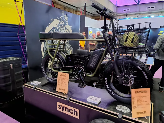 When you first enter the Cycle Show you are met with a bewildering array of eBikes: they are taking over! You can’t avoid it, us analogue riders – that’s a term I heard being used by a couple of eBikers – are on the decline. Soon we’ll all be electrified, which I would have appreciated when carting my kids around in a trailer up a 12% climb! Something like the long wheel-base Synch S-Cargo bike would be great for trips to the supermarket.