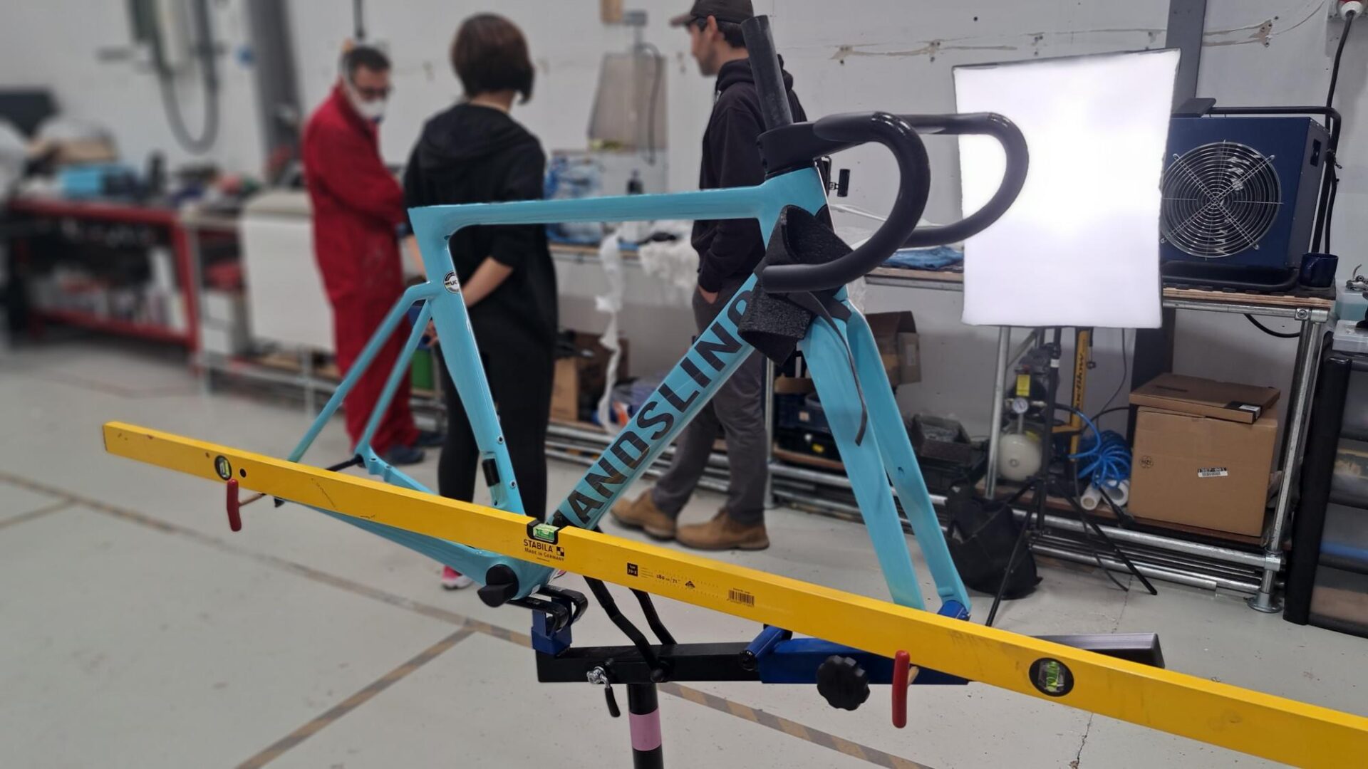 Once all the parts were assembled, the build began. First Francesca’s measurements were checked; to the millimetre. I’ve never seen so much care taken with getting everything just so, or so many spirit-levels! Handsling’s Sam, was on hand to help and offer advice and tips during the process, but Francesca was very hands-on, as she will have to re-build the bike in a few days.