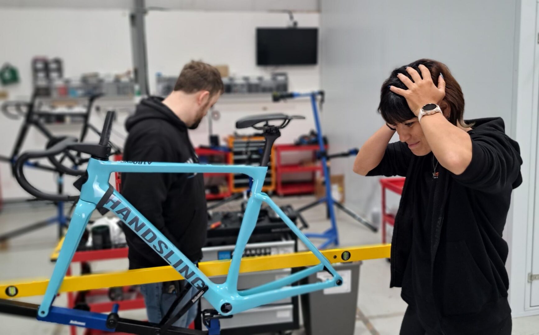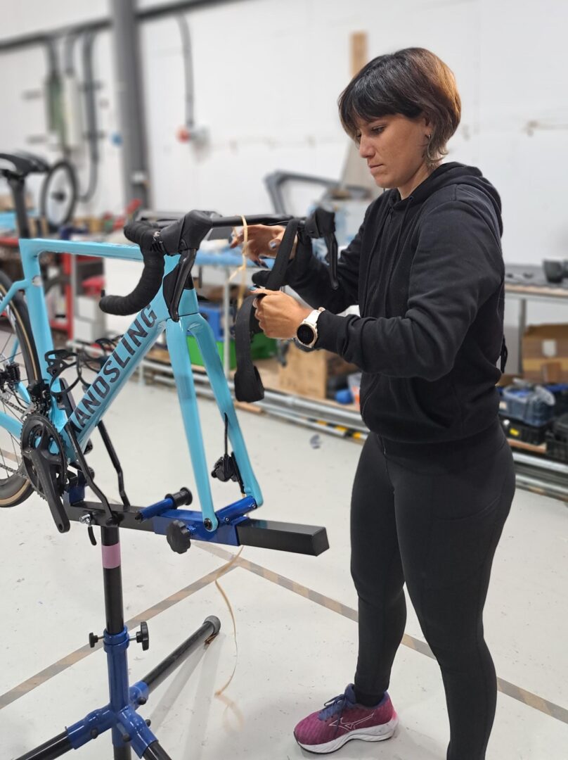 On the track Francesca rides a Handsling TR3evo, on which she uses a set of Mythos TX-1.1 bars. We wrote about her trip to Mythos to have them fitted, read it here. This year she is going to add more road racing to her calendar; good for training and to garner more exposure. Track racing gets much less TV time compared to road racing and a professional athlete must make sure that sponsors and selectors can see them. Handsling were sponsoring her with their aero road frame and she was going to build it up at their HQ.