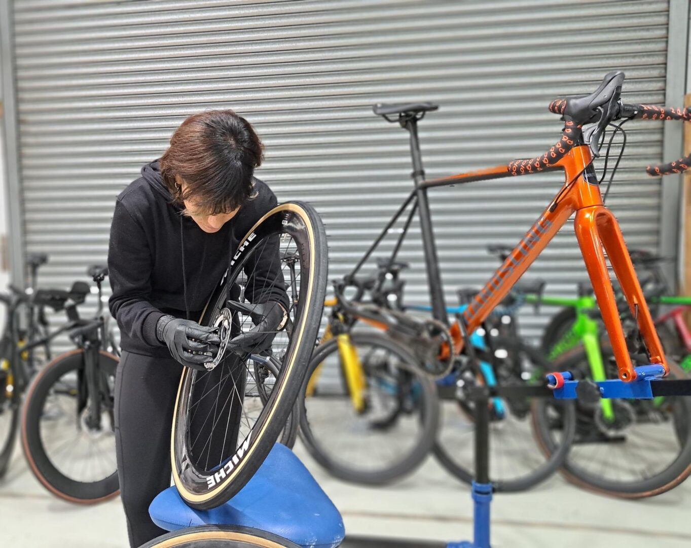 Francesca rides on Miche wheels