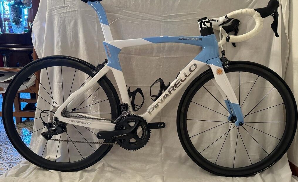 What do you buy the cyclist who has everything? How about the Pope’s Pinarello? Gifted to Pope Francis in 2021 by Egan Bernal, the Dogma F12 has turned up on the Catawiki auction site. Bernal gave the bike and a signed pink jersey to the Pope after his Giro victory in ’21.
