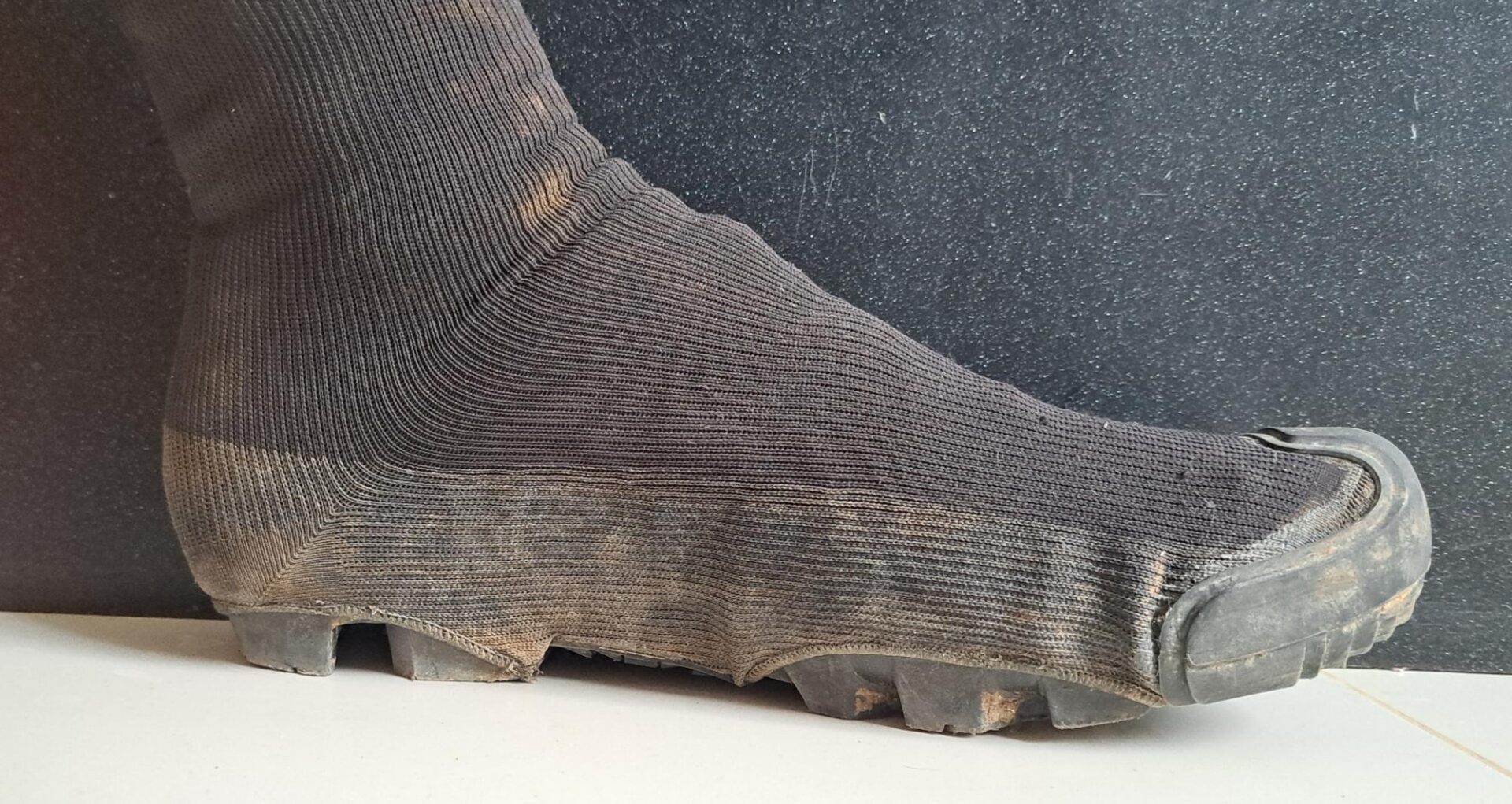 However, I did have mud creep in on long, deep mud sections. It managed to force its way up through the front sole opening and onto the top of my shoe. However, unlike some shoe covers that I have used off road, they stayed put. I’ve had other covers come right off when walking through deep mud, so that was a plus. I think you need to make sure you get a good tight fit and make sure that mud can’t force its way in. Part of this involves pulling any loose fabric back from the toe to the back of the shoe and choosing the right size. To give you an idea of fit I wear EU43 shoe and these were a size large.