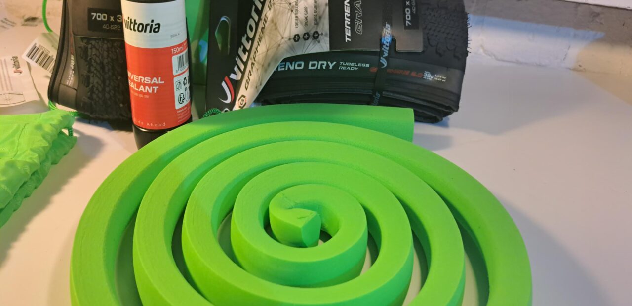 The Vittoria Air Liner Gravel is one of four types of liner in Vittoria’s range. There are two for MTBs, one for road and this, the gravel version. All of them are made from the same bright green, high-density polymer which has been treated with a water-proof coating. The coating is to stop the liner absorbing your sealant.