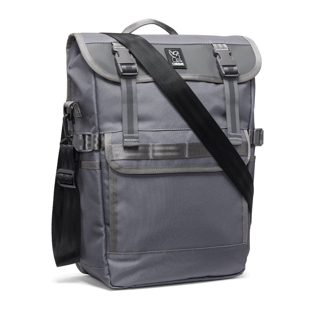 Chrome’s Holman Pannier is pitched as an everyday workhorse. It’s a lightweight, water‑resistant 20‑litre roll‑top with enough structure to keep its shape, but not so much that it feels overbuilt. A universal hook‑and‑loop mounting system aims to fit most racks, and the exterior zip pocket plus removable 38mm shoulder strap make it practical off the bike too.